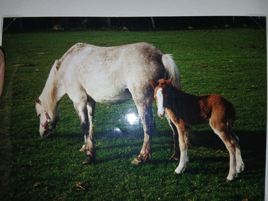 Pico war ein sehr besonderes Pony- das war schon bei seiner Geburt klar. Sicher waren wir, dass ein kleiner Rappe geboren werden würde. Fiete, sein Vater, hat ausnahmslos Rappen gezeugt. Sollte das Fohlen nach seiner Mutter kommen, hätte die Schimmelstute Santana ein dunkles Fohlen gebähren müssen. Schimmel werden immer dunkel geboren und werden erst im Laufe ihres Lebens weiß. Die Überraschung war riesig, als dann ein kleiner Fuchshengst das Licht der Welt erblickte.